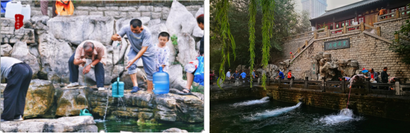 【“四大泉群”之黑虎泉】(游览时间约为30 分钟)泉水从虎口涌出激柱石,声如虎啸。在这里,您可以看到许多老济南拎着小白桶来打泉水,您也可以提前准备个矿泉水瓶,到此打上一桶,回到酒店煮茶,尝尝这“活水”泡茶,茶汤是不是更清甜。