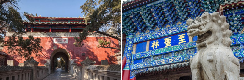 【天下第一庙·孔庙】又称至圣庙,位于曲阜城中,建筑金碧辉煌、大成殿气势恢宏,令人叹为观止,是中国祀孔庙堂中建造年代最早,规模最大的一座, 与北京故宫,承德避暑山庄合称为中国古代三大古建筑群。这里有故宫同款的红墙,有明清时期黑白灰主调的建筑和城墙,在这里可以感受影响力中国千年思想的儒家文化。
